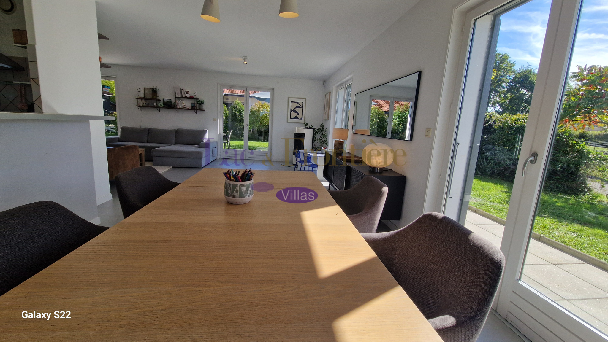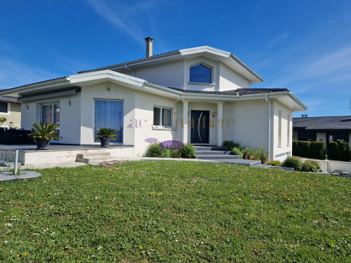 Cette villa des années 90 rénovée en 2020 totalisant près de 200 m2 de surface utile conjugue espace et luminosité ce qui lui confère son aspect actuel séduisant : atypique et moderne. Depuis le jardin, l'accès principale par quelques marches mène à une entrée qui dessert une grande pièce de vie de 60 m² avec poêle à bois une cuisine fonctionnelle et équipée, une grande chambre, un bureau et une salle de bain complètent le rez de chaussée.