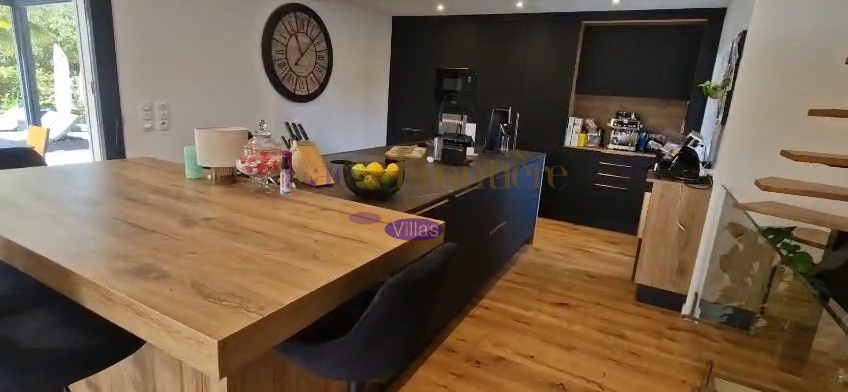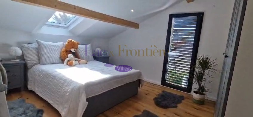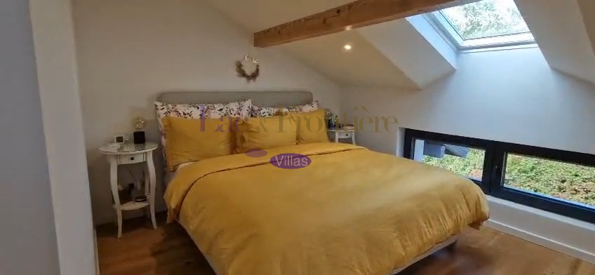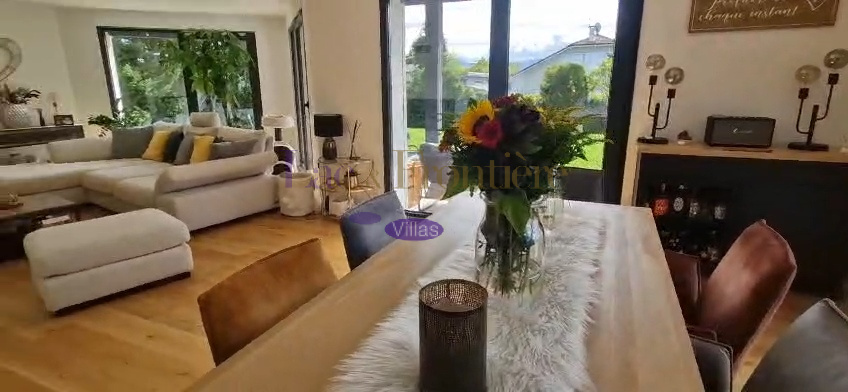 Dans une ambiance « comme à la maison » cette magnifique villa d'architecte unique en son genre bénéficie d'un environnement privilégié à quelques encablures de la Suisse voisine. Cette propriété a évolué au fil des ans et offre aujourd'hui de beaux volumes pour une surface habitable totale d’environ 200 M2. Sa géométrie marquée, ses matériaux et ses ouvertures traversantes omniprésentes créent une ambiance chaleureuse et conviviale. Ce bien séduira les inconditionnels d’architecture. La partie principale propose un salon avec cheminée, une salle à manger et d’une belle luminosité grâce à ses baies vitrées. Attenant aux pièces de vie, une grande cuisine superbement équipée. A l ‘étage une suite parentale avec salle de bain et dressing, deux chambre une salle d'eau. Au rez inferieur, un salon tv , une salle de sport ainsi qu’une chambre avec salle d’eau attenante, une chaufferie et une cave. Parfaitement équipée: une pompe à chaleur pour le chauffage, panneaux solaires, des volets "Bso " roulants, deux places de parking, un jardin paysager, une piscine chauffée